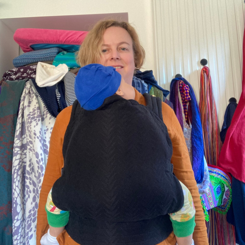 Wat vinden wij er zelf van? Door de hardere tailleband is het cruciaal dat deze mooi past bij je figuur, anders voel je hem plooien/veroorzaakt hij drukpunten. De coupenaden van Artipoppe zijn eng, wat een mooie diepe zit wat bemoeilijkt. De smalle schouderbanden zijn elegant en ideaal voor smallere draagouders. En net zoals de reclame al doet vermoeden is deze ook niet heel geschikt voor de plussize mama of papa want de webbing is tamelijk kort. Het gekruist dragen met een peuter/kleuter vraagt ook best wat lenigheid om over je kindje dicht te klikken. Het borstbandje is vanuit veiligheidsstandpunt een gemis. Snel wisselen tussen buik- en rugdragen zonder je kindje uit de zak te halen is bijna onmogelijk en het rugpand is aan de korte kant, wat een kind dat graag met de armen uit de drager zit wel fijn vindt.