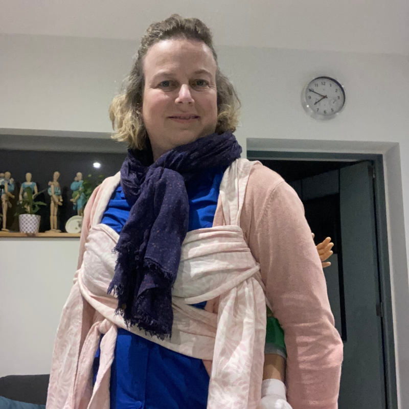 Wat vinden we er zelf van? De drager is gemakkelijk om te doen en ook het verstellen ervan lukt tamelijk eenvoudig. De touwtjes zijn vlot te knopen en ruw genoeg zodat ze blijven zitten. De schouderbanden hadden breder gemogen, zeker voor zwaardere kindjes is meer gespreide ondersteuning aangenamer. Ook de lengtes is maar net aan, deze drager is dus niet geschikt voor dames met een stevig maatje meer, al zijn er altijd manieren om aan te passen.