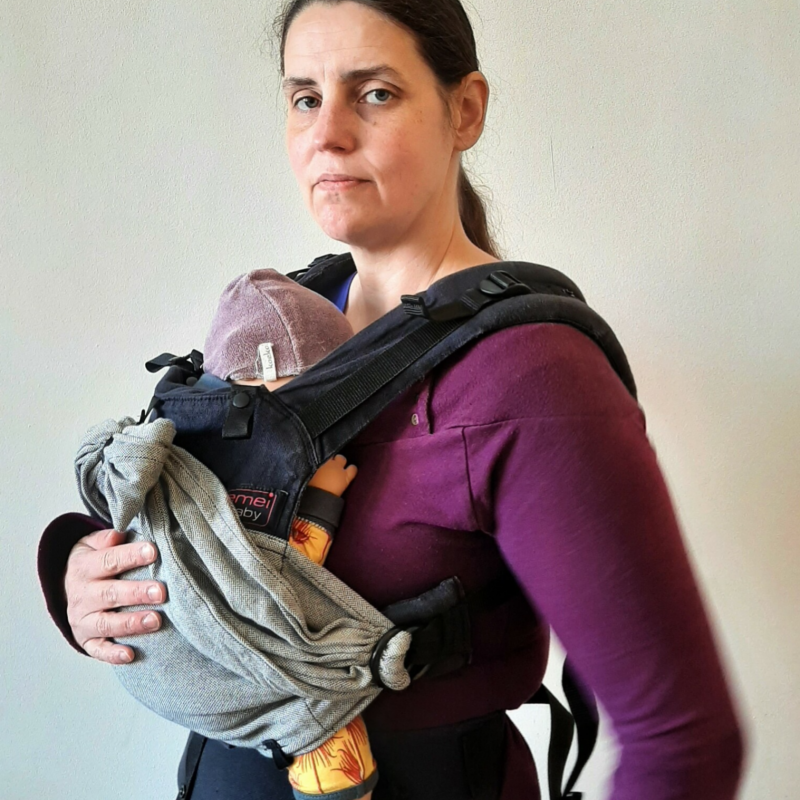 Wat vinden wij ervan: Het is een systeem dat het kind een gevoel geeft gedragen te worden in een geweven doek. Het materiaal is ook doekenstof. De laterale steun is zeker bij heel jonge baby’s fijn en geeft je als ouder een veilig gevoel, en het maakt dat dit een van de allereerste full buckle dragers op de markt was waarbij je ook een wat kleinere newborn ergonomisch en perfect ondersteund kan dragen. Helaas is de nieuwere Emeibaby Easy dat niet meer, deze past doordat het systeem met de aanhechting van de tailleband veranderd is, slechts pas vanaf maat 56. Het is wel even oefenen om deze drager om te doen en af te stellen. De ringen moet je eens de juiste maat is ingesteld wel niet meer aanpassen de volgende keer. De gespen staan tamelijk hoog op de schouderbanden waardoor niet iedereen aan de webbing (het koord waarmee je aanspant) kan om de schouderbanden aan te spannen of los te maken, al kan je dit probleem ondervangen door de PFA's losser te zetten.