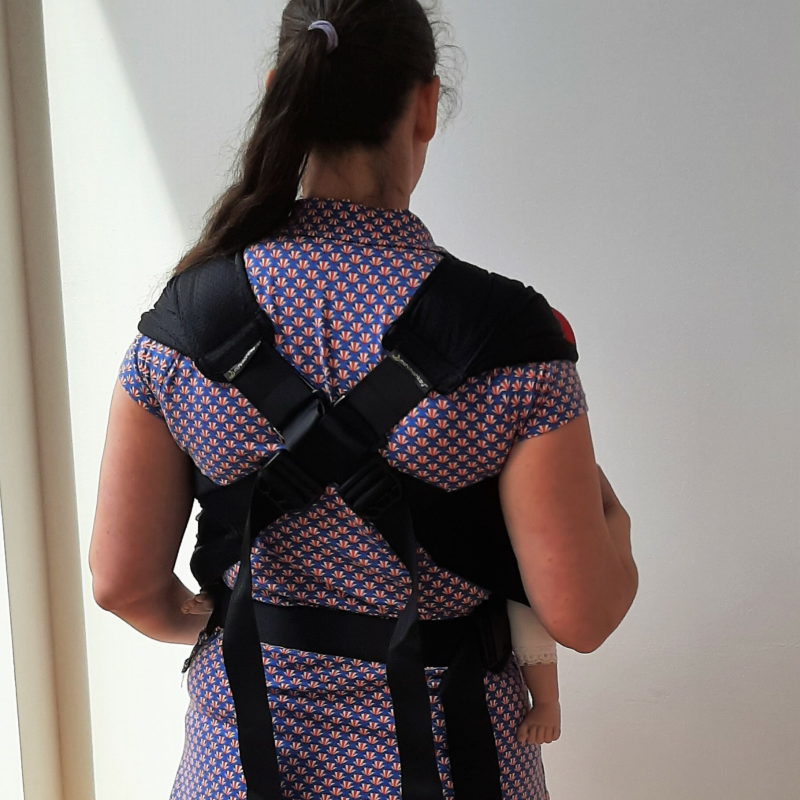 Als ouder is dit een drager die even oefening vraagt. Maar eens hij goed is afgesteld en je weet hoe hij werkt is het een heel fijne en makkelijke drager. Het mesh maakt de drager heel luchtig. Wat zeker in de zomer een groot voordeel is. De tailleband is katoen en redelijk soepel en zacht. Op je rug zit een kruis dat je kan aanpassen, en op maat maakt, afhankelijk van de persoon die draagt. Het mesh maakt de drager ook heel erg licht en compact op te bergen.