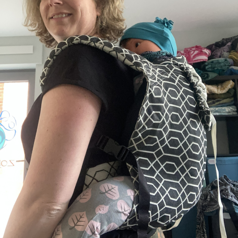 Vandaag kozen we voor het toddler model. Deze drager is te gebruiken van ongeveer maat 86/92 tot en met maat 104/110.